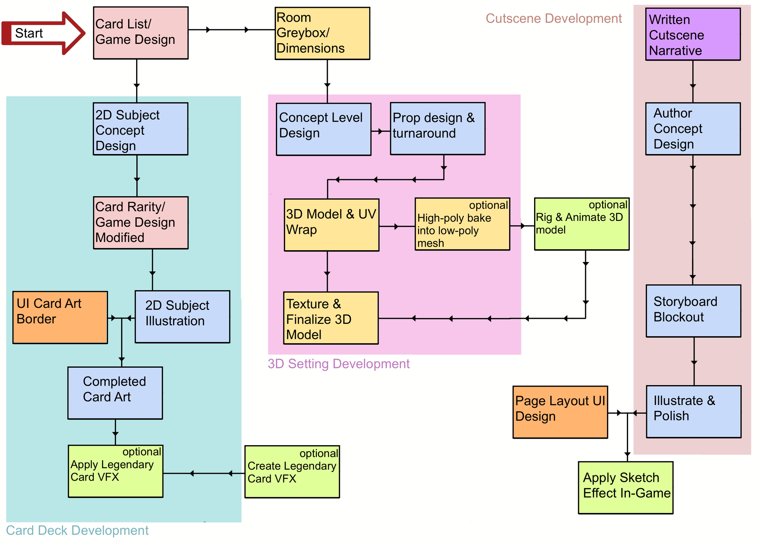 As Art Producer on Masterworks of Horror, I developed and designed a successful scheduling and management system to track artists and prioritize how their specific disciplines best serve the project. This tracking featured several task management styles used in tandem to best suit the distinct needs of the five art teams. Given that this project was based on voluntary student participation, I was able to assign substantial amounts of work by creating controlled frameworks in which artists' questions were answered quickly and concisely, leading to the development of work with few to no blockers.